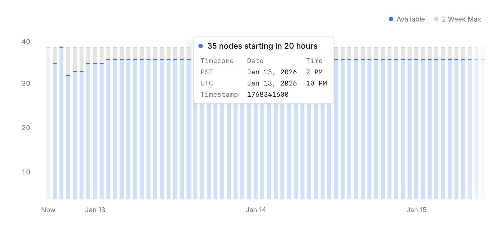 The zones page now shows more detailed capacity availability information, with clearer hour boundaries for planning your workloads.